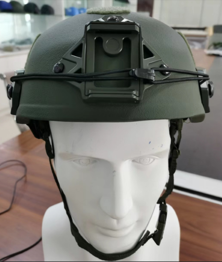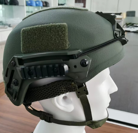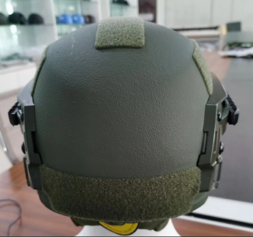 防弹头盔(型号规格FDK2F-XX01-L)是采用新型专利技术(专利号:20151023842.6)生产,盔体采用凯夫拉或PE纤维织物复合特种胶黏剂在高温高压条件下模压而成;内外表面喷涂消光层,具有重量轻、防水、耐温、防磁和耐紫外线老化、耐化学腐蚀性能。根据用户要求你可以喷涂军绿、黑色、沙漠黄,UN蓝等多种颜色,并做了消光处理避免光的反射,喷聚均匀、并紧密付着于盔体,头盔边缘的橡胶条一体成型,确保橡胶条不易脱落。